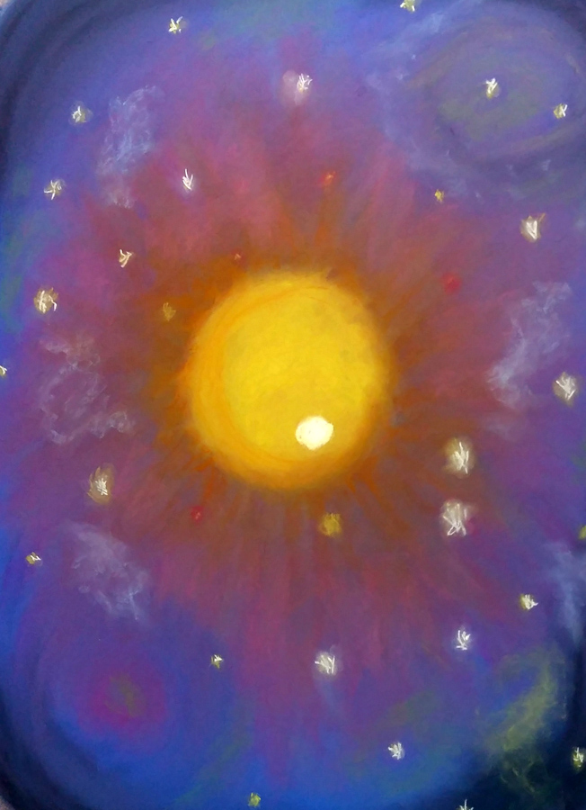 Téma: nakreslete vaši představu o vesmíru. Barevné křídy, barevné čtvrtky.